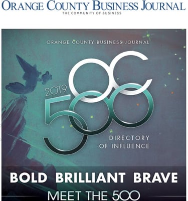 Recognition as OC 500 Most Influential Business Leaders (2019 & 2020) by Orange County Business Journal.